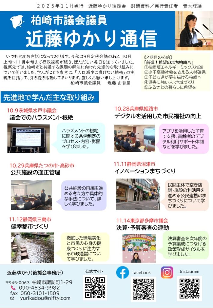 後援会報「近藤ゆかり通信」令和7年11月号を発行しました。