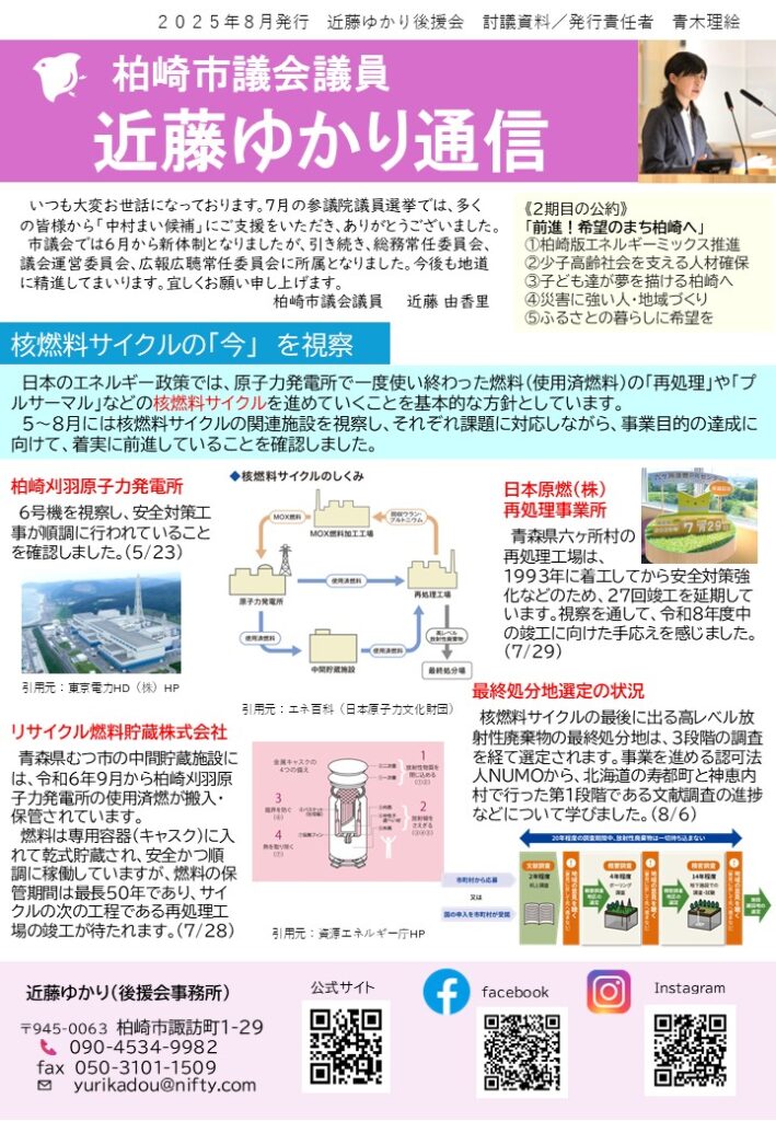 後援会報「近藤ゆかり通信 2025年8月号」を発行しました。